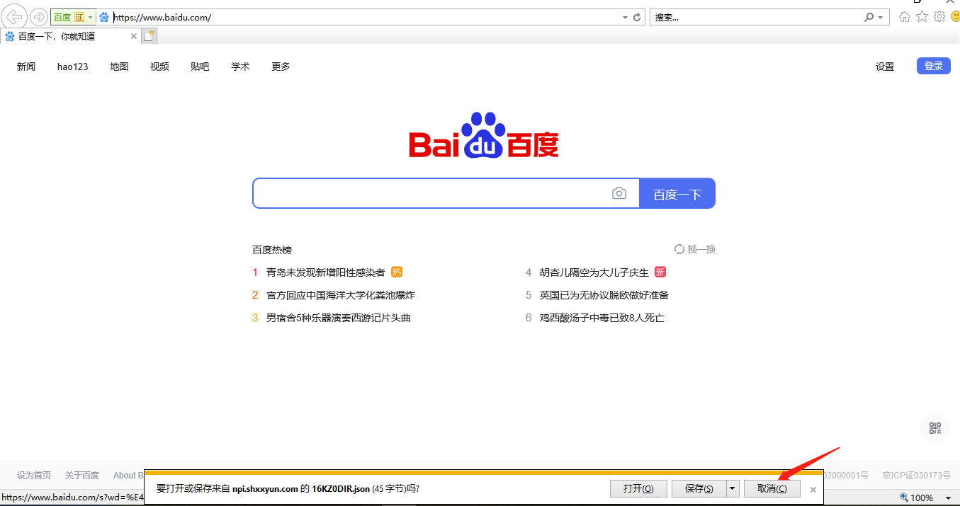 该故障大多是运营商之间的网络互通问题造成的;首先可以尝试在浏览器中打开未带证中参数设置里面的地址,若打开该地址返回的结果如下图所示: